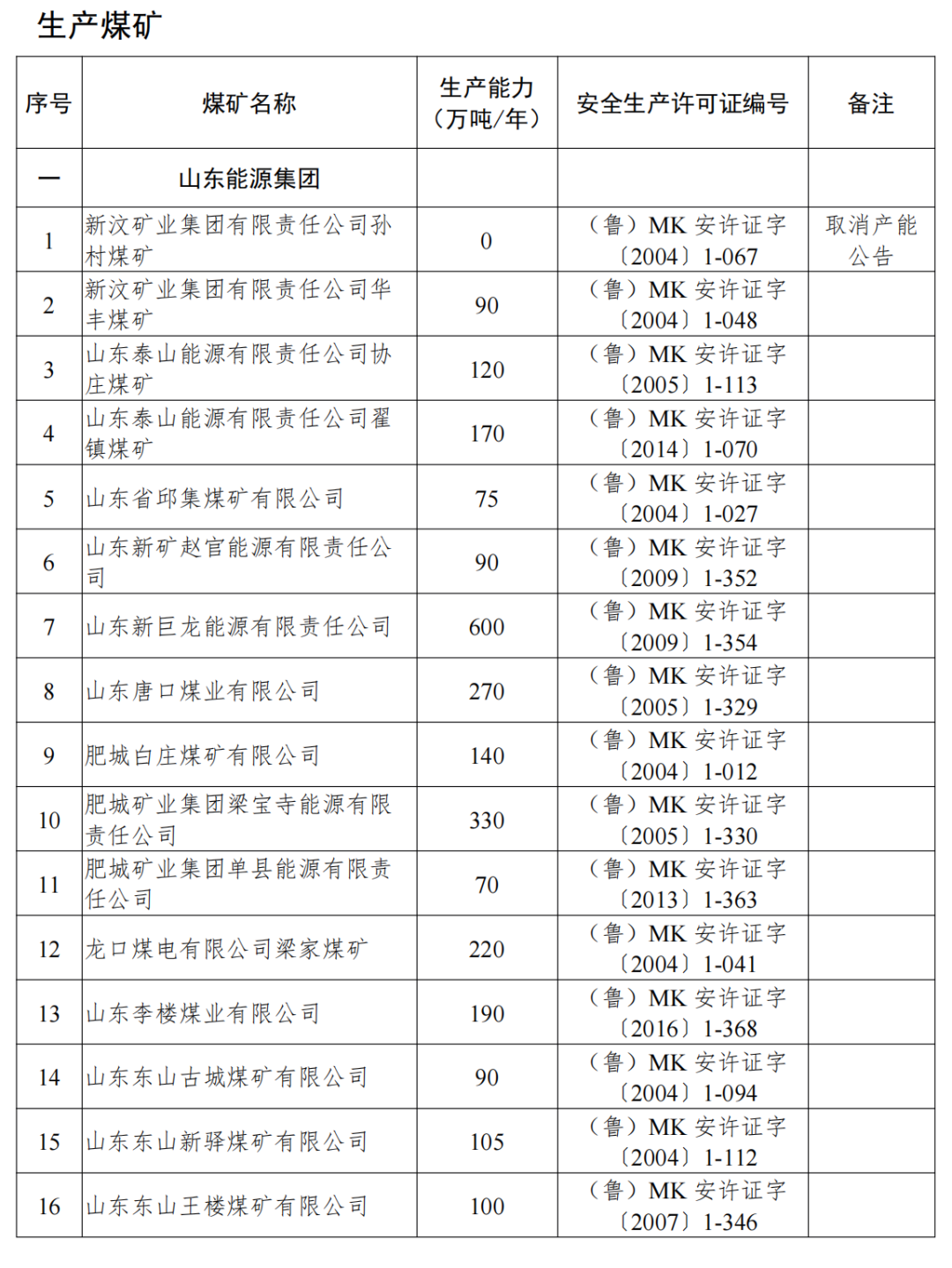 山東省有依法生產建設煤礦80處,產能規(guī)模11437萬噸年